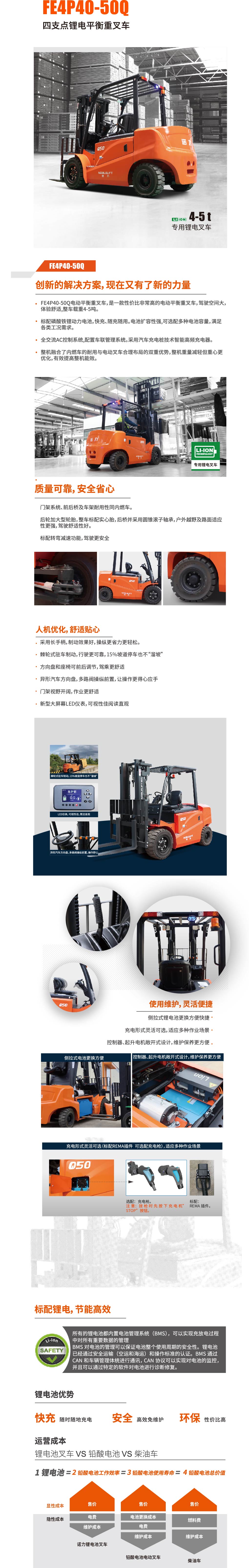 4.0/5.0噸四支點前驅平衡重式電動叉車